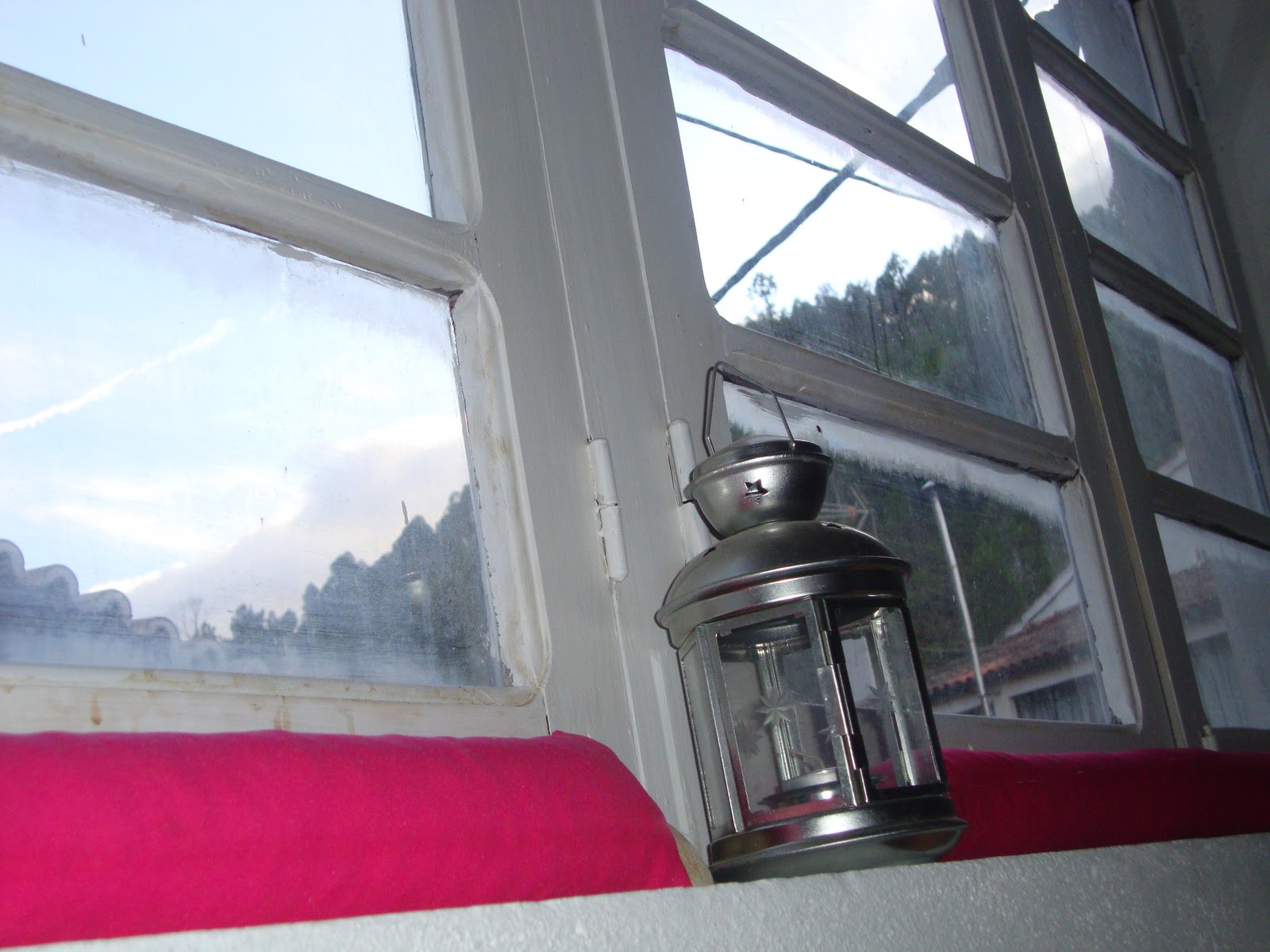 Trata-se de um recanto lá da casa da aldeia, tinha esta janela velha... e paredes sujas!! Ficou com uma janela restaurada e pintadinha de branco (por mim!! : ) e uma parede também pintadinha de novo!! Com um sofá confortável... ficou um lugar ótimo para disfrutar da linda vista da serra que rodeia toda a aldeia.